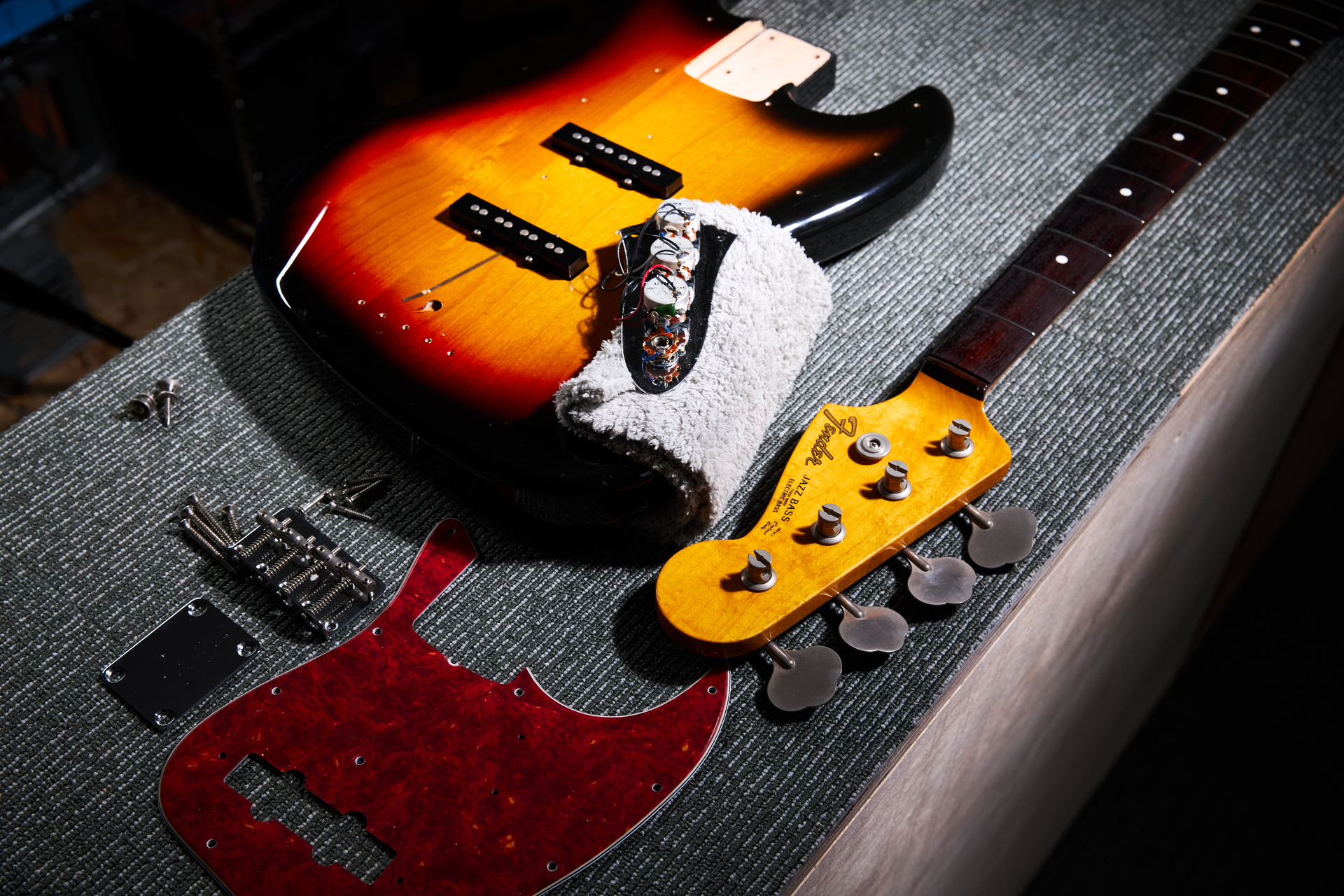 エレキギター・ベースの心臓部である配線のリペアです。電子部品の劣化はガリや音切れに直結し、徐々に本来のサウンドが出せなくなります。洗浄メンテナンスはもちろん、部品交換やカスタム配線にも対応します。
